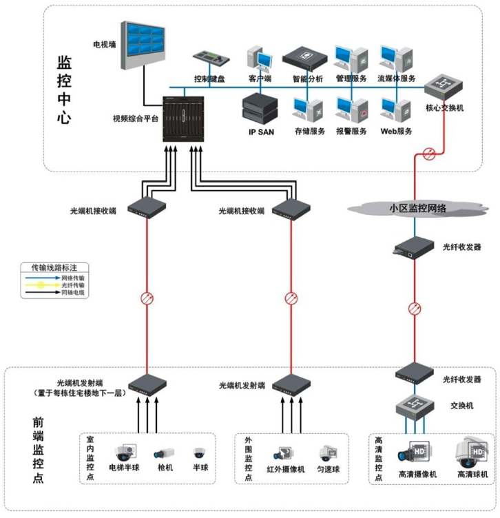 即部署在的光纖和局域網,本次監控系統的主干網絡傳輸部分采用光纜。