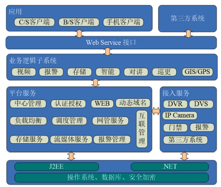 對操作系統、數據庫、安全加密、多媒體協議的封裝,屏蔽差異,實現上層應用的平臺無關性,提高開發效率和系統兼容性。在服務器端我們選擇了J2EE作為開發平臺,在客戶端我們選擇.NET作為平臺。