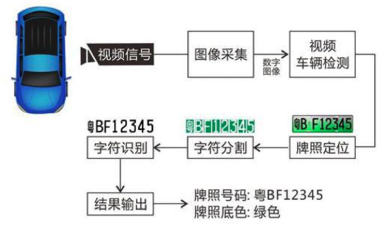 抓拍相機內置算法,根據新能源汽車車牌進行研發及算法升級,針對新能源車 牌的特點進行算法修改,并結合新能源樣本進行算法訓練,不斷優化,通過對車牌號字符的分析與字符庫進行匹配,輸出車牌號信息。