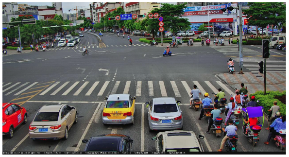 1、當有車輛進入視頻檢測區域時,400萬抓拍一體機對車輛行駛軌跡進行跟蹤分析,并結合車道屬性(左轉、直行、右轉、專用車道等)、標線屬性(白實線、雙黃線、導流帶等)和車輛軌跡進行邏輯判斷,判斷車輛是否存在機動車在專用車道(公交專用道、應急車道、非機動車道)內行駛、機動車不按導向車道行使、機動車違反禁令標線行駛、機動車逆向行駛、外地車高峰限行等交通違法行為,然后進行抓拍。