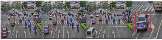 系統根據配置好的圖片合成和信息疊加模式,將依次抓拍的三張圖片排列組合,并與車輛局部放大的特寫圖片合成為一張完整的圖片,輸出完整的違法占用非機動車道全過程。