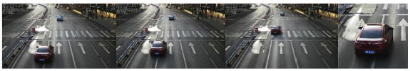 2、系統對通行車輛進行實時監控抓拍,每條違法記錄由三張圖片和一張特寫圖片構成,能夠清晰表現機動車違法的完整過程,違法過程的圖片位移保持適宜的距 離,以清晰反映機動車違法過程。抓拍圖片符合《闖紅燈自動記錄系統通用技術條件》(GA/T496-2014)標準和《道路交通安全違法行為圖像取證技術規范》(GA/T832-2014)標準中的相關要求。以機動車違法占用公交專用車道的違法行為為例,說明違法行為抓拍過程: